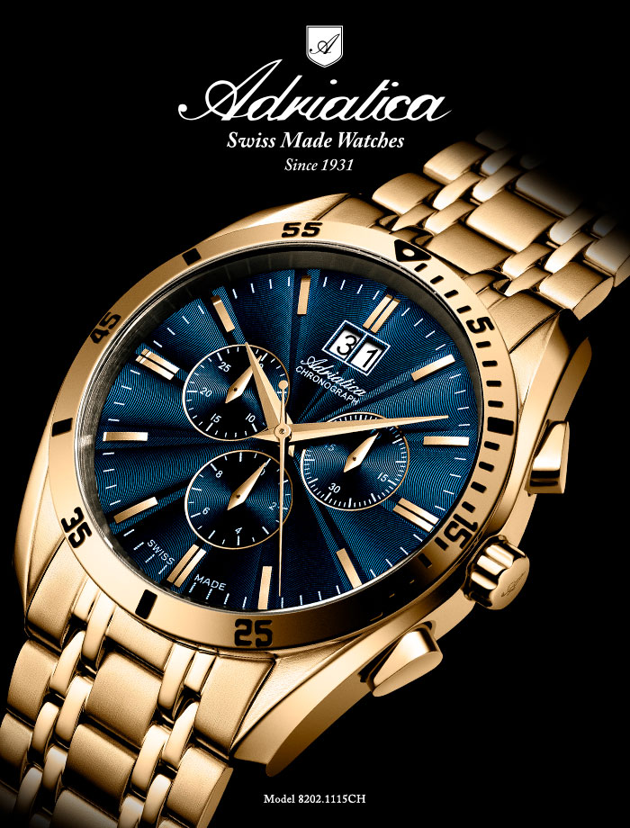 Надпись “Swiss Made” на часах Adriatica воплощает концепцию совокупности высокого швейцарского качества, точности, надежности в сочетании с элегантностью и оригинальностью дизайна. Именно это и есть Adriatica.