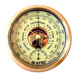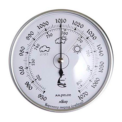 Также распространены устройства с разметкой на шкале, которая указывает на определенные погодные условия. Если давление низкое, барометр указывает на отметку «шторм». Самому высокому давлению соответствует термин «суш». Необходимо отметить, что эти отметки не отличаются точностью и дают только общее понимание о предстоящей погоды.