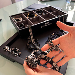 Модели Bomberg очень яркие, эпатажные, креативные, многие украшены черепами, но, как объяснил сам дизайнер, у мексиканцев черепа символизируют не то, что у нас. Мексиканцы верят в жизнь после смерти. И даже День поминовения мертвых превращают в карнавал - для них это веселый праздник. А для байкеров, к примеру, череп - это символ единства всего человечества во всем мире. Они узнают друг друга по такой символике.