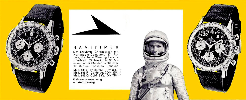 В 1962 году выпущена новая версия модели Navitimer. В разработке ее дизайна принял участие астронавт Скотт Карпентер. Важной особенностью модели стал 24-часовой циферблат. Этими часами Карпентер пользовался на борту космического корабля «Аврора 7».