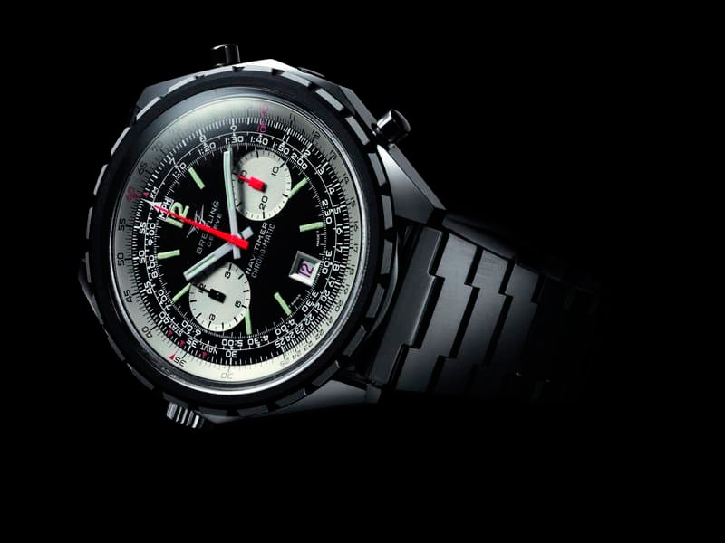 В 30-е годы основной ассортимент марки Breitling составляли хронографы – более 40 различных моделей наручных часов и хронографов для кабин самолетов. До 1934 года наручные часы-хронографы имели только одну кнопку управления, из-за чего после запуска и остановки механизма необходимо выполнить обнуление. Эту техническую особенность Уилли Брайтлинг считал главным недостатком, который требовалось исправить. В результате он запатентовал первый в мире наручный хронограф с двумя кнопками управления. Через два года компания Breitling представила новый авиационный хронограф с черным циферблатом, люминесцентными цифрами и стрелками. Его механизм оснащен практичным безелем, вращающимся в оба направления, и универсальным указателем с люминесцентным покрытием.