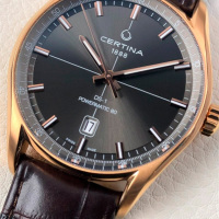 Корпус: Корпус из нержавеющей стали с PVD покрытием золотом розового цвета. Серый циферблат, золотистые стрелки и часовые индексы с люминесцентным покрытием. Сапфировое стекло с антибликовым покрытием. Диаметр 40 мм. Водостойкость 100 м. Система DS.