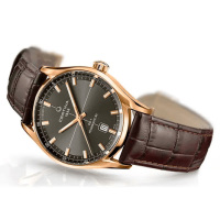 Ремешок: Коричневый ремень из кожи с раскладывающейся застёжкой.