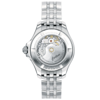 Корпус: Нержавеющая сталь 316L. Белый перламутровый циферблат, декорирован 8 бриллиантами Top Wesselton. Стрелки и часовые индексы золотистого цвета. Сапфировое стекло с односторонним антибликовым покрытием. Диаметр 34,5 мм. Водозащита 200 м.