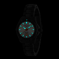 Корпус: Корпус из нержавеющей стали. Сапфировое стекло с антибликовым покрытием. Светлый серебристый циферблат, позолоченные стрелки и часовые индексы. Вращающийся безель. Диаметр 34,3 мм. Водонепроницаемость 300 метров.