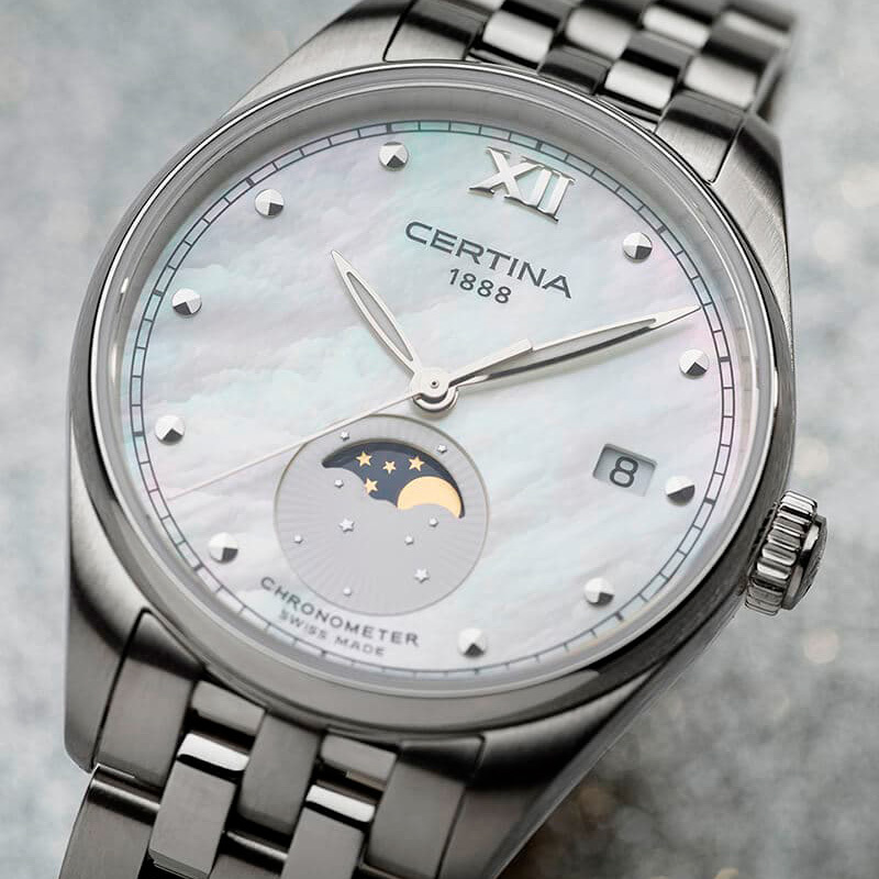 Корпус: Корпус из полированной/матовой нержавеющей стали. Сапфировое стекло антибликовое покрытие стекла, перламутровый циферблат. Диаметр 32.5 мм. Водостойкость 100 м. Система DS.