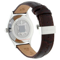 Корпус: Корпус из нержавеющей стали. Коричневый циферблат, золотистые стрелки и часовые индексы с люминесцентным покрытием. Сапфировое стекло с антибликовым покрытием. Диаметр 41 мм. Водостойкость 100 м.