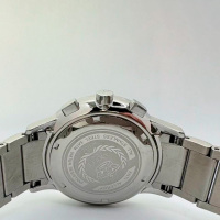 Функции: Индикация часов, минут и секунд при помощи центральных стрелок, текущее время в 24-х часовом формате. Хронограф. Дата.