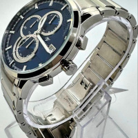 Корпус: Корпус выполнен из высококачественной стали с повышенной устойчивостью к коррозии, поверхность с полировкой до зеркального блеска. Синий циферблат. Накладные часовые индексы и стрелки выполнены из стали с покрытием. На стрелках покрытие SuperLuminova, которое обеспечивает подсветку в темное время суток. Прочное минеральное стекло обеспечит защиту часов от повреждений (стекло может быть прозрачным или слегка торированным синим). Диаметр корпуса составляет: 43 мм. Водостойкость: WR 50 (мытье рук, дождь).