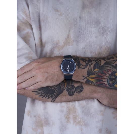 Ремешок: Кожанный ремешок синего цвета обеспечивает комфорт при ношении. Силиконовый ремень синего цвета в комплекте.