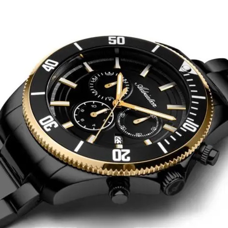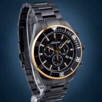 Корпус: Круглый корпус выполнен из полированной нержавеющей стали с частичным PVD покрытием. Чёрный циферблат. Накладные часовые индексы выполнены из стали. Стрелки с покрытием SuperLuminova, которое обеспечивает подсветку в темное время суток. Сапфировое стекло. Диаметр корпуса составляет 48 мм, толщина 12 мм. Водостойкость WR 50 (мытье рук, дождь).