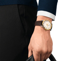 Корпус: Корпус выполнен из высококачественной стали 316L с частичным жёлтым PVD покрытием золотом. Светлый циферблат. Метки в виде римских цифр. Клиновидные стрелки в стиле Dauphine. Сапфировое стекло. Рифленая заводная головка.  Диаметр корпуса 42 мм. Водозащита 50 метров.
