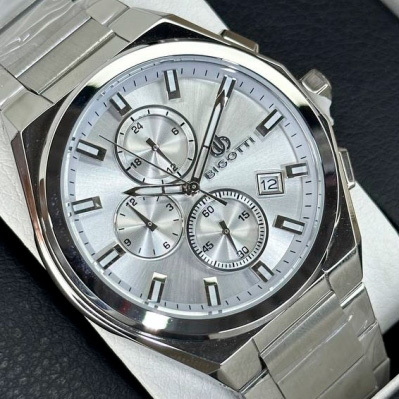 Корпус: Корпус изготовлен из латуни и имеет надёжное износостойкое покрытие серебристого цвета. Циферблат серебристого цвета выполнен по технологии Sunray (солнечные лучи). Часовые индексы и стрелки с люминесцентным покрытием. Прочное минеральное стекло обеспечит защиту часов от повреждений. Диаметр: 44 мм. Водонепроницаемость: 50 м.