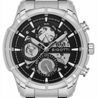 Корпус: Стильные мужские часы со скелетонизированным циферблатом. Корпус изготовлен из латуни и имеет надёжное износостойкое покрытие серебристого цвета. Циферблат черного цвета. Часовые индексы и стрелки с люминесцентным покрытием. Прочное минеральное стекло обеспечит защиту часов от повреждений. Диаметр: 44 мм. Водонепроницаемость: 50 м.