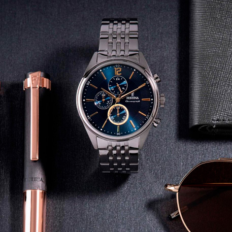 Ремешок: Надежный, прочный браслет из нержавеющей стали. Застёжка с системой блокировки, украшена фирменным логотипом Festina.