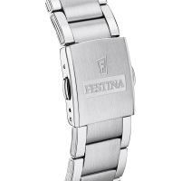 Ремешок: Надежный стальной браслет с раскладывающейся застежкой, которая украшена фирменным логотипом Festina.