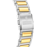Ремешок: Надежный, прочный и элегантный браслет из нержавеющей стали с частичны PVD покрытием. Застёжка с системой блокировки, украшена фирменным логотипом Festina.