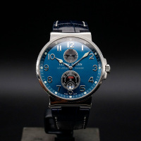 Корпус: Корпус из нержавеющей стали. Сапфировое стекло. Чёрный циферблат, арабские цифры. Люминисцентные стрелки и часовые метки. Водонепроницаемость 200 метров. Диаметр 41 мм.