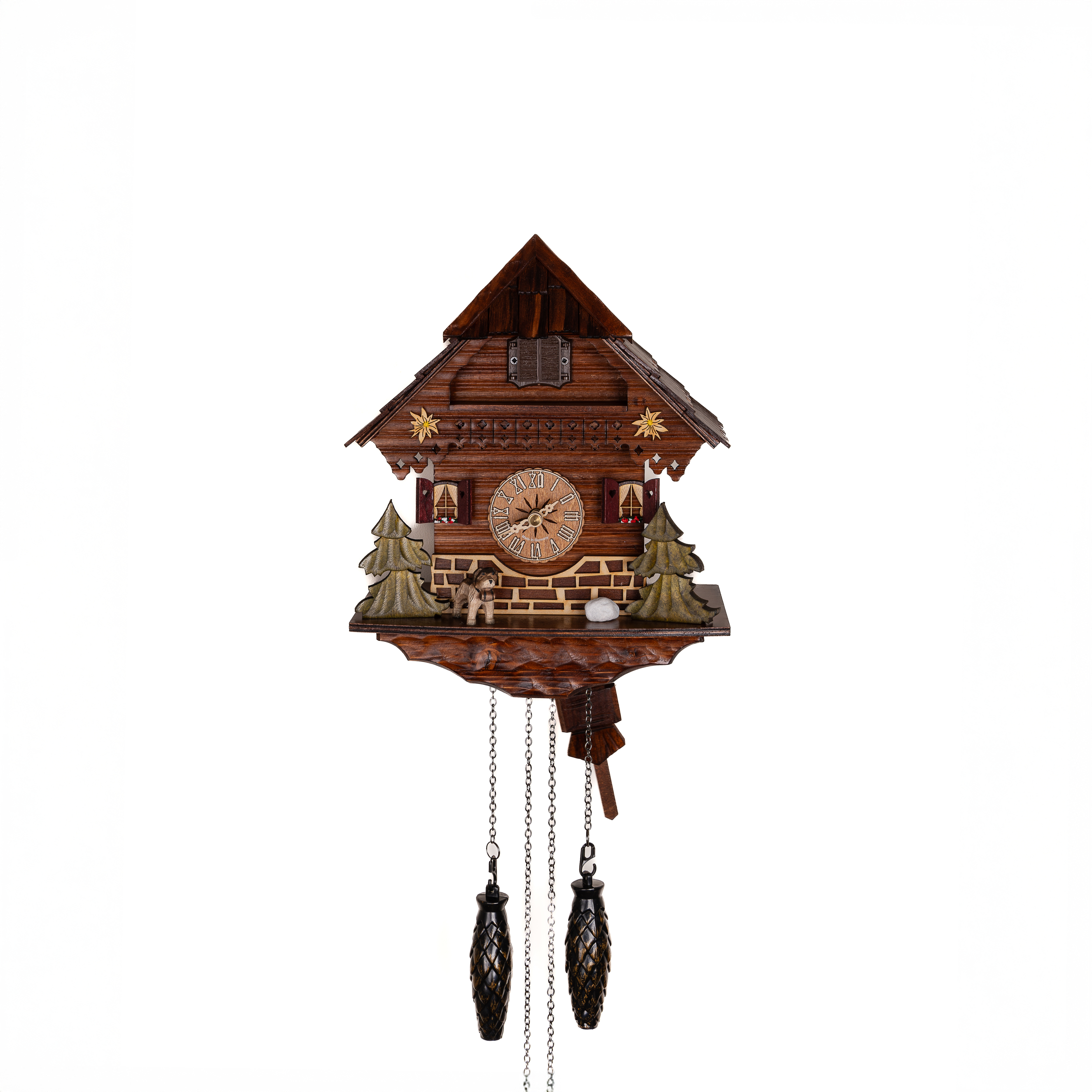 Механизм: Кварцевый. Декоративные маятник и гири. Кукушка кукует каждый полный час.