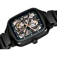 Корпус: Высокотехнологичная керамика чёрного цвета. Чёрный циферблат. Стрелки и часовые индексы позолоченные с люминесцентным покрытием по технологии SuperLumiNova®. Сапфировое стекло с антибликовым покрытием. Прозрачная задняя крышка из сапфирового стекла. Диаметр/размер: 38 мм. Водостойкость 50 м.