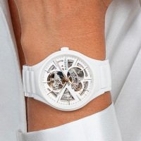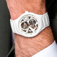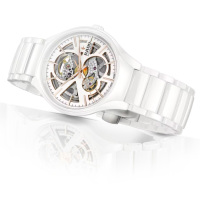 Корпус: Высокотехнологичная керамика белого цвета. Белый циферблат. Стрелки и часовые индексы позолоченные с люминесцентным покрытием по технологии SuperLumiNova®. Сапфировое стекло с антибликовым покрытием. Прозрачная задняя крышка из сапфирового стекла. Диаметр 40 мм. Водостойкость 50 м.