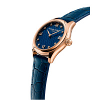 Корпус: Корпус модели выполнен из высококачественной стали 316L с повышенной устойчивостью к коррозии, поверхности с полировкой до зеркального блеска и PVD-покрытием. На синем циферблате 8 бриллиантов. Стрелки и часовые индексы позолоченные. Сапфировое стекло имеет антибликовое покрытие, что позволяет циферблату быть хорошо читаемым и видимым даже в самые солнечные дни. Диаметр: 36 мм. Водозащита: 50 м.