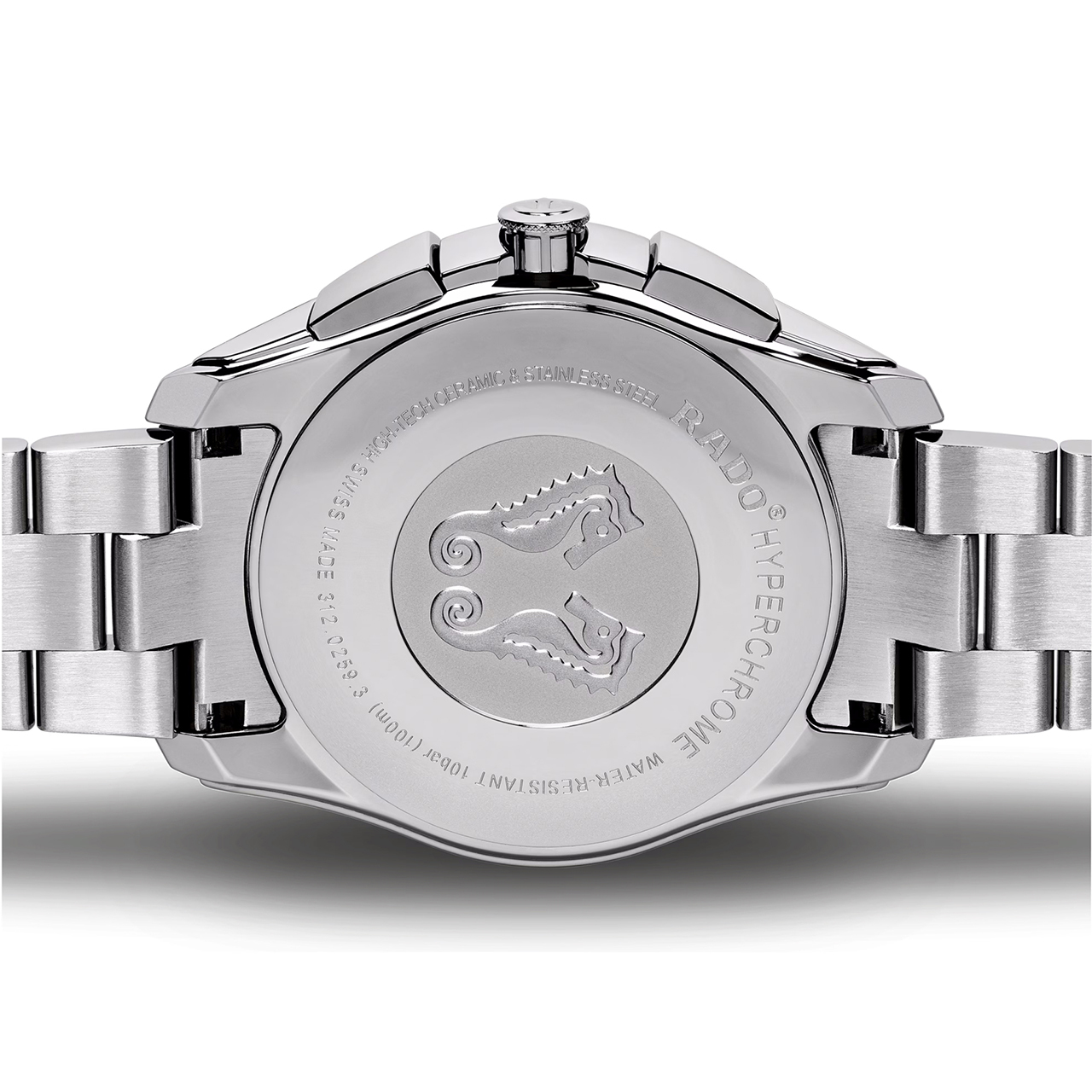 Корпус: Нержавеющая сталь, безель из высокотехнологичной керамики, сапфировое стекло с антибликовым покрытием. Циферблат темно-серого цвета. Водонепроницаемость 100 метров. Диаметр 44,9 мм.