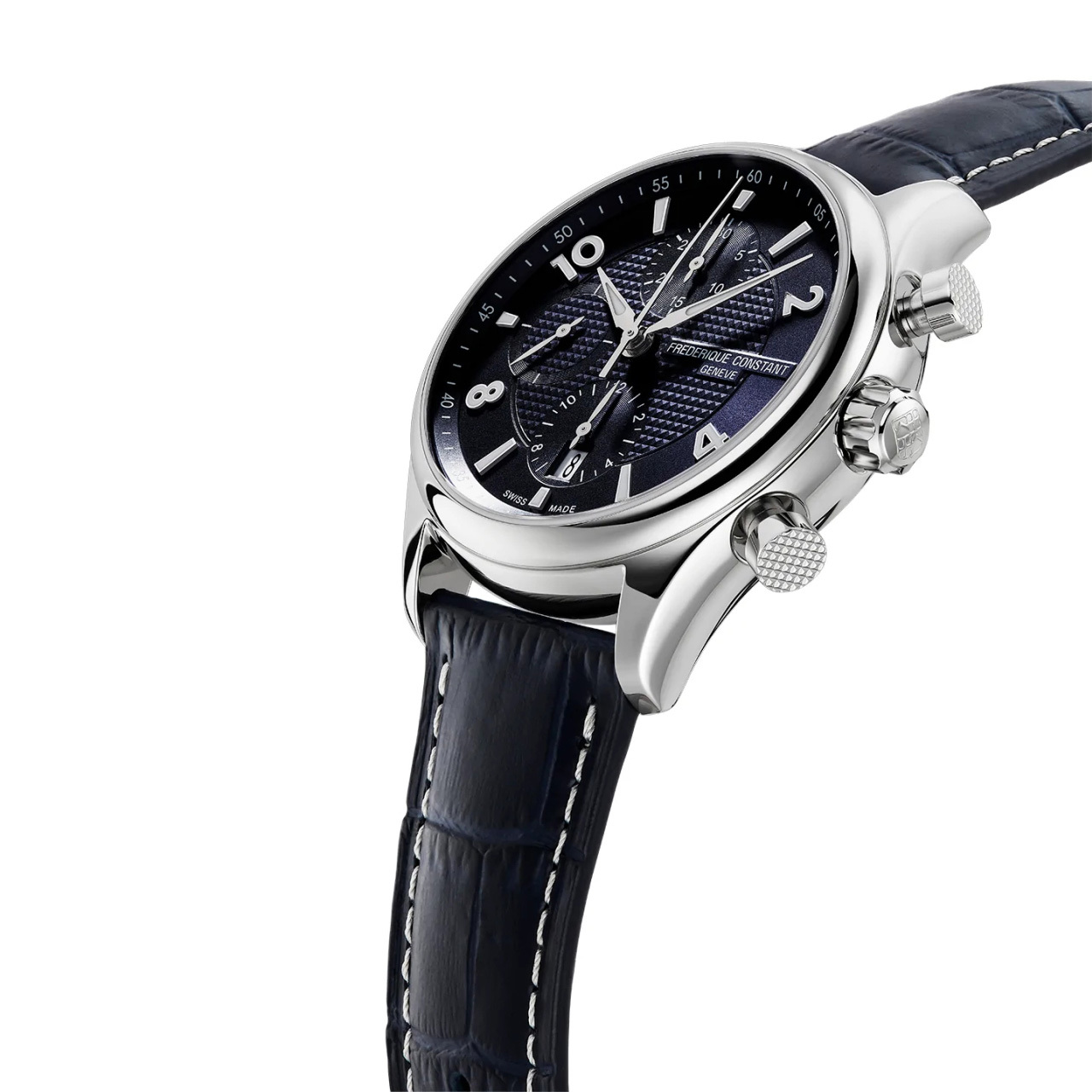 Корпус: Корпус выполнен из высококачественной стали с полировкой до зеркального блеска. Циферблат синего цвета. Полированные стальные стрелки и часовые индексы покрыты люминесцентным составом SuperLuminova. Сапфировое стекло устойчивое к царапинам с антибликовым покрытием. Заводная коронка украшена рельефной эмблемой марки, кнопки хронографа с насечкой в стиле "парижские гвозди". Задняя крышка с памятной картинкой Runabout RHS на прозрачном окне имеет резьбовое соединение с корпусом. Диаметр: 42 мм. Водозащита: 50 м.