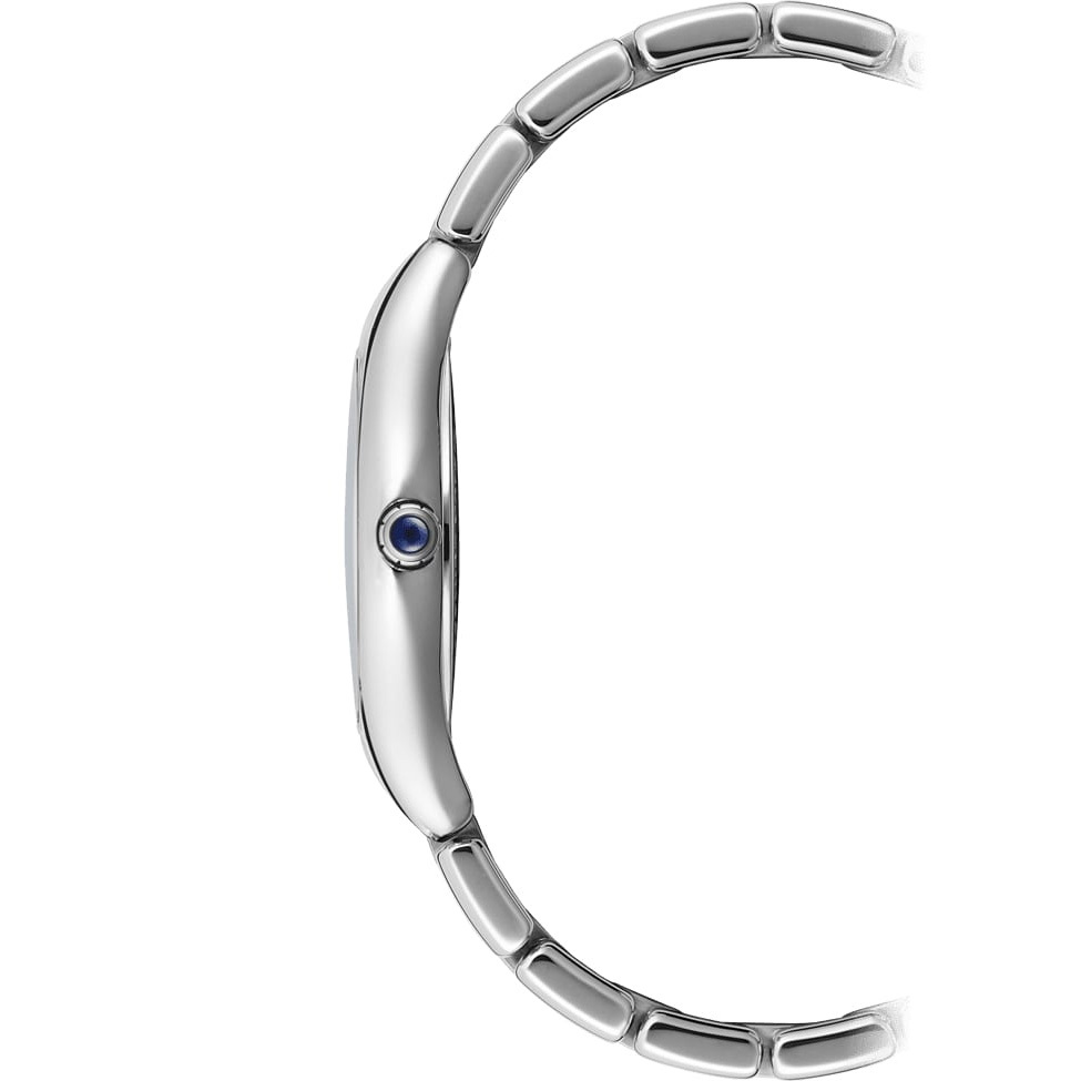 Корпус: Корпус с плавными линиями выполнен из нержавеющей стали марки 316L. Циферблат глубокого синего цвета с гильошированием и шлифовкой центральной части в стиле "солнечных лучей", 11 бриллиантов с круглой огранкой 8/8 - SI2 - SI1 весом 0,058 карата в качестве часовых индексов, аппликация римских цифр и стрелки имеют покрытие родием. Сапфировое стекло имеет повышенную устойчивость к возникновению царапин. Переводная коронка украшена кабошоном синего цвета. Задняя крышка крепится к корпусу на 4 винта. Диаметр корпуса модели составляет 32 мм, толщина - 7.58 мм. Водостойкость 50 метров (165 ft / 5 АТМ).