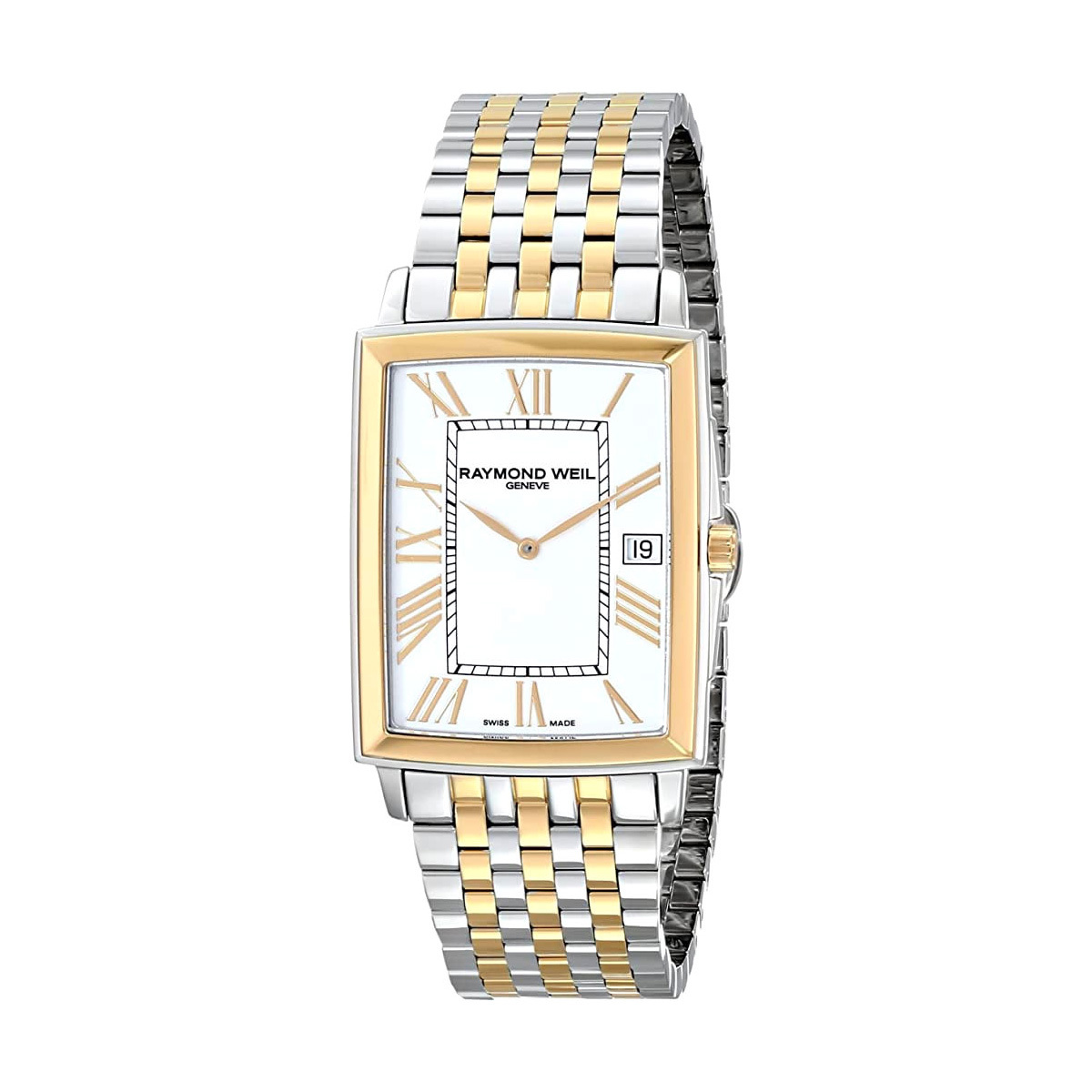 Ремешок: Браслет с литыми звеньями в пять рядов, выполненными из нержавеющей стали с PVD покрытием желтого цвета. Браслетная застежка, раскладывающаяся при нажатии на кнопки с двойной системой безопасности и гравировкой Raymond Weil.