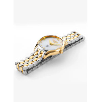 Корпус: Корпус выполнен из высококачественной нержавеющей стали 316L, с частичным IP покрытием. Перламутровый циферблат белого цвета декорирован бриллиантами, золотистые стрелки и часовые индексы. Сапфировое стекло с антибликовым покрытием. Диаметр: 30 мм. Водозащита: 30 м.