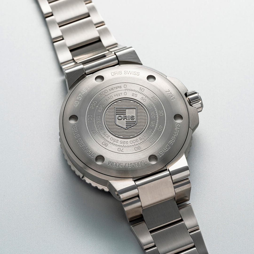 Ремешок: Браслет из нержавеющей стали с запатентованной компанией Oris раскладывающейся застёжкой.