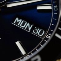 Корпус: Многокомпонентный корпус из нержавеющей стали, керамический ободок чёрного цвета с минутной шкалой. Сапфировое стекло, выпуклое с внутренним антибликовым покрытием. Синий циферблат Sunray, стрелки и накладные часовые метки с родиевым покрытием и белым Superluminova. Завинчивающаяся задняя крышка со специальной гравировкой. Завинчивающаяся заводная головка из нержавеющей стали. Диаметр 45,5 мм. Водонепроницаемость 500 метров.