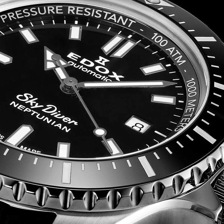 Корпус: Корпус из высококачественной нержавеющей стали, керамический безель чёрного цвета. Чёрный циферблат. Часовые индексы и стрелки стальные, полированные с покрытием Super-LumiNova®. Сапфировое стекло с антибликовым покрытием. Однонаправленный безель вращается со щелчками в направлении против хода стрелок, рельефная поверхность с гравированной разметкой в виде больших цифр. Завинчивающаяся заводная головка с защитой. Диаметр: 44 мм. Водонепроницаемость: 1000 м.