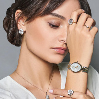 Корпус: Нержавеющая сталь с PVD-покрытием из розового золота. Серебристый циферблат. Сапфировое стекло защищает циферблат с фирменным узором арабески. Размер 26х37,1 мм. Водостойкость 50 м.