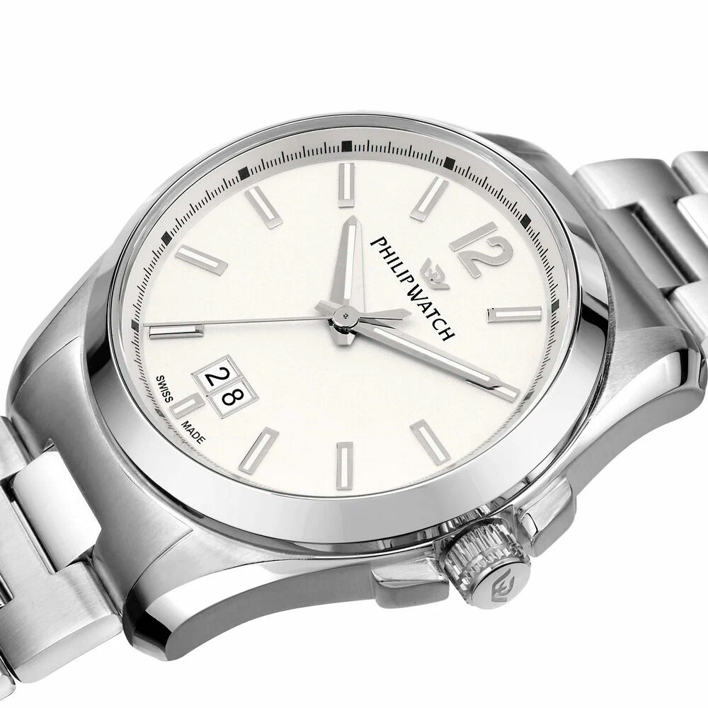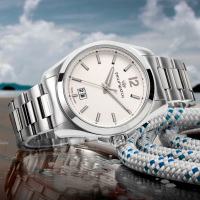 Корпус: Корпус выполнен из высококачественной стали с повышенной устойчивостью к коррозии, поверхности с матовой шлифовкой – сатинированием и полировкой до зеркального блеска. Циферблат белого цвета. Люминесцентный состав на стрелках и на разметке циферблата. Сапфировое стекло, это лучшее стекло для наручных часов, которое не царапается при механическом воздействии, его можно повредить только алмазом. Диаметр корпуса: 43 мм. Водозащита до 100 метров позволит плавать.