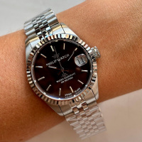 Корпус: Корпус выполнен из высококачественной стали с повышенной устойчивостью к коррозии, поверхности с матовой шлифовкой – сатинированием и полировкой до зеркального блеска. Циферблат коричневого цвета с шлифовкой “солнечные лучи". Люминесцентный состав на стрелках. Сапфировое стекло, это лучшее стекло для наручных часов, которое не царапается при механическом воздействии, его можно повредить только алмазом. Диаметр корпуса: 31 мм. Водозащита до 100 метров позволит плавать.