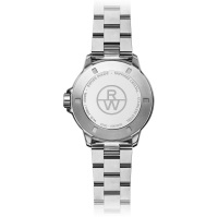 Корпус: Корпус круглой формы выполнен из нержавеющей стали марки 316L. Циферблат черного цвета с гильошированием по внешнему краю в виде концентрических полос. Часовые индексы, выполненные методом аппликации, и стрелки с серебристым покрытием, секундная стрелка и стрелка GMT имеют окраску оранжевого цвета. Люминесцентное покрытие Super-Luminova на стрелках, часовых индексах и маркере безеля. Сапфировое стекло с двухсторонним антибликовым покрытием имеет повышенную устойчивость к возникновению царапин. Переводная коронка с винтовой фиксацией украшена логотипом RW. Задняя крышка имеет резьбовое крепление к корпусу. Диаметр: составляет 42 мм, толщина - 11 мм. Водостойкость 300 метров (1000 ft / 30 АТМ).