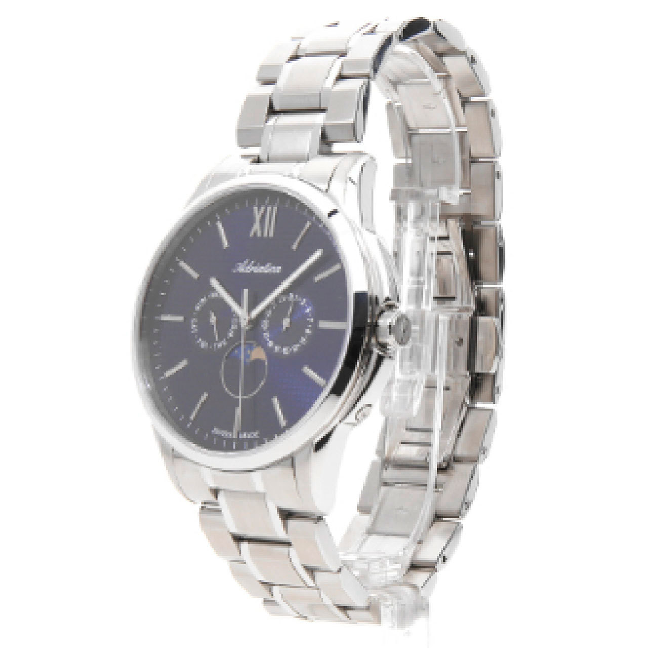 Функции: Центральные часовая, минутная и секундная стрелки. Дата. День недели. Индикатор фазы Луны.
