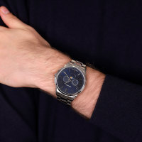 Корпус: Круглый корпус выполнен из полированной нержавеющей стали. Синий циферблат с узором гильоше. Накладные часовые индексы выполненый из стали. Стрелки с покрытием SuperLuminova, которое обеспечивает подсветку в темное время суток. Сапфировое стекло устойчивое к возникновению царапин. Диаметр корпуса составляет 45 мм, толщина 10 мм. Водостойкость WR 50 (мытье рук, дождь).