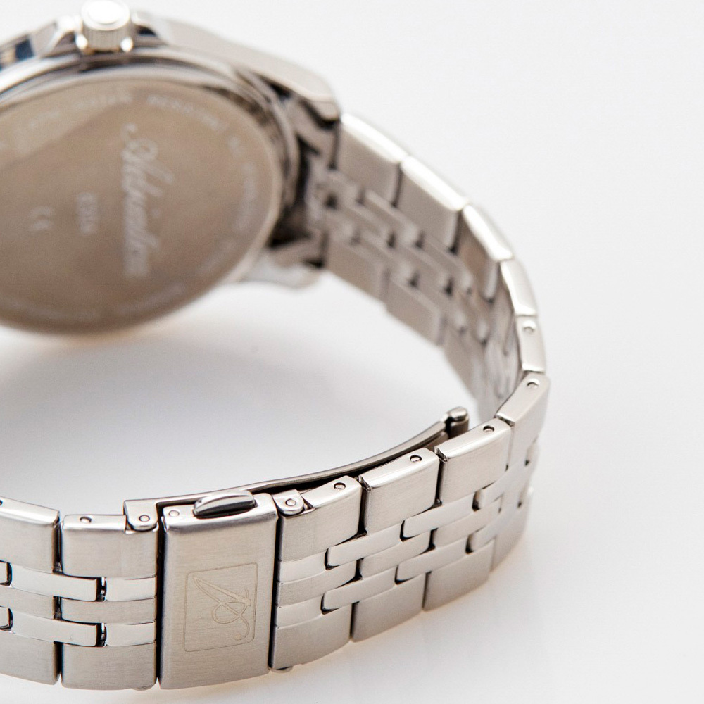Ремешок: Браслет выполнен из нержавеющей стали. Браслетная раскладывающаяся застежка с гравировкой логотипа.