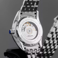 Корпус: Корпус выполнен из высококачественной стали с повышенной устойчивостью к коррозии, поверхности с матовой шлифовкой – сатинированием и полировкой до зеркального блеска. Синий циферблат с узором гильоше. Накладные часовые индексы и стрелки выполненый из стали. Сапфировое стекло устойчивое к возникновению царапин. Диаметр корпуса составляет 43 мм, толщина 10 мм. Водостойкость WR 50 (мытье рук, дождь).