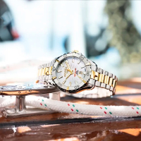 Корпус: Высококачественная нержавеющая сталь, марки 316L с частичным покрытием из жёлтого золота. Перламутровый циферблат. Стальные стрелки и часовые индексы с люминесцентным покрытием Super-LumiNova для оптимальной разборчивости в условиях низкой освещенности. Сапфировое стекло с антибликовым покрытием. Рифлёная заводная головка с логотипом марки «Roamer». Диаметр: 34 мм. Водонепроницаемость: 200 м.