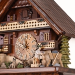 Механизм: Механические часы с кукушкой, которые работают от гирь на цепной тяге. Сделан на фирме SBS-Feintechnik GmbH & Co. KG Германия. Шварцвальдский дом с подвижным дровосеком. Запас хода на 8 дней. Ручное отключение звука. В каждые пол часа кукушка появляется из своего домика, наклоняется и воспроизводит звук кукушки (ку-ку) один раз, в каждый полный час она кукует столько раз сколько показывают стрелки на часах. Одна гиря отвечает за ход часов, вторая за работу механизма кукушки и дровосека. В то время пока кукушка кукует дровосек колет дрова и продолжает это делать пока кукушка не остановится.