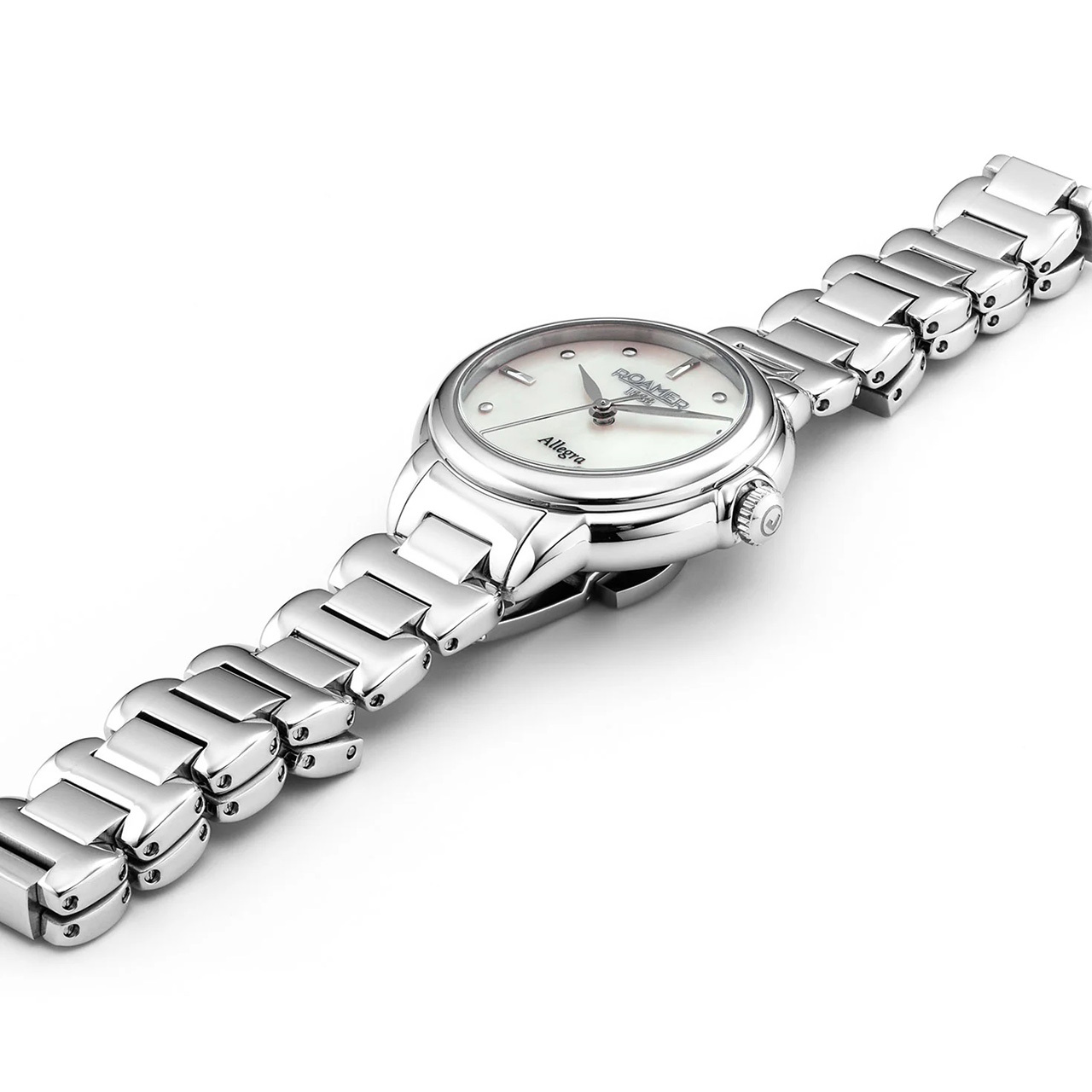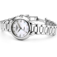Корпус: Корпус из нержавеющей полированной/матовой стали. Белый перламутровый циферблат с серебристыми стрелками. Сапфировое стекло, устойчивое к царапинам с антибликовым покрытием. Диаметр 32 мм. Водонепроницаемость 30 м.