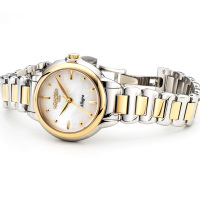 Корпус: Корпус выполнен из высококачественной нержавеющей стали 316L с частичным покрытием из жёлтого золота. Перламутровый циферблат, позолоченные стрелки и часовые индексы. Сапфировое стекло с антибликовым покрытием. Рифленая заводная головка. Диаметр: 32 мм. Водонепроницаемость: 30 м.
