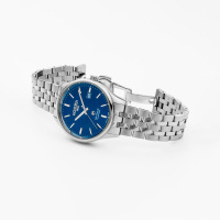 Корпус: Корпус круглой формы выполнен из нержавеющей стали марки 316L. Циферблат синего цвета. Серебристые стрелки и часовые индексы с люминесцентным покрытием. Сапфировое стекло с антибликовым покрытием. Водонепроницаемость: 50 метров. Диаметр: 42 мм.