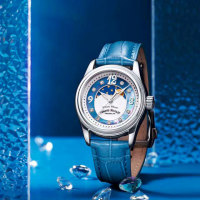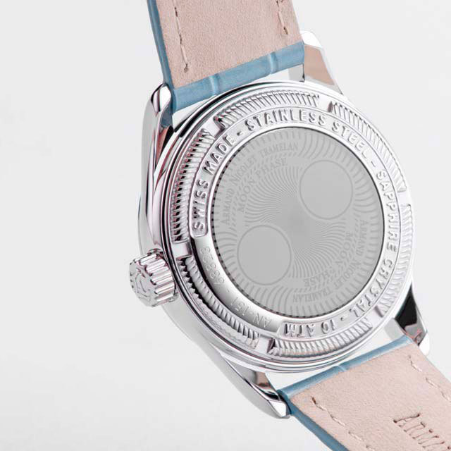 Функции: Индикация часов, минут и секунд при помощи центральных стрелок. Часы оснащены крупным индикатором фаз луны, который расположен в верхней части циферблата.