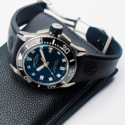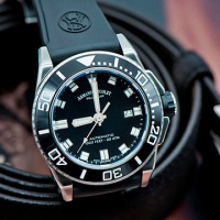 Корпус: Корпус из нержавеющей полированной/матовой стали, керамический безель. Чёрный циферблат с серебристыми стрелками и часовыми индексами. Светонакопительный состав на стрелках и часовых индексах. Сапфировое стекло с антибликовым покрытием. Диаметр 44 мм. Водозащита 300 м.