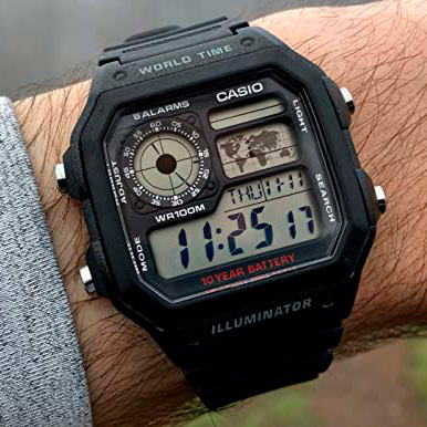 Функции: 12-ти и 24-х часовой формат времени. Светодиодная подсветка. 4 отображения часового пояса. Функция мирового времени. Функция секундомера- 1/100 сек. Таймер - 1/1 сек. 5 ежедневных будильников. Включение/выключение звука кнопок. Автоматический календарь. После настройки автоматический календарь всегда отображает точную дату.